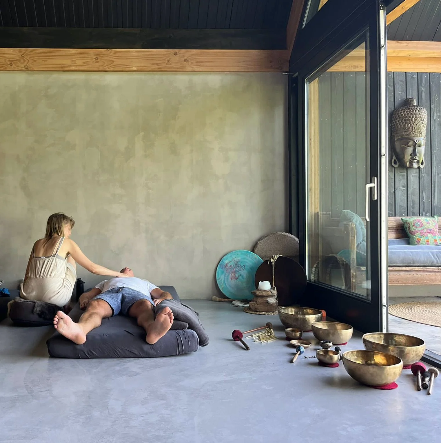 The location is a special place in Aarlanderveen. In ‘Het Buitenhuis’ you have a beautiful view over the grasslands. The space feels calm and grounding and is perfect for reaching altered states of consciousness while staying connected to the earth. After the ceremony we will serve a lovely dinner. You can easily reach the location by car and train.